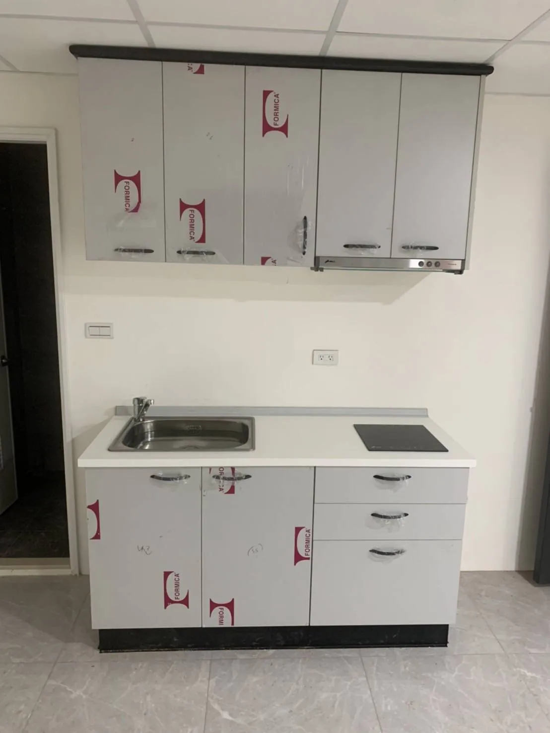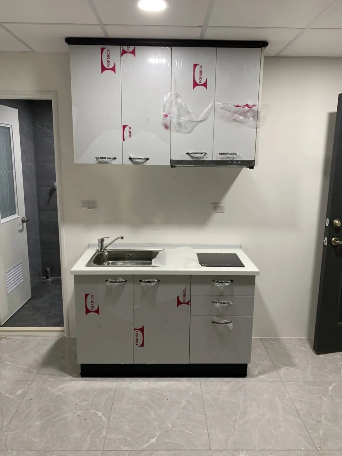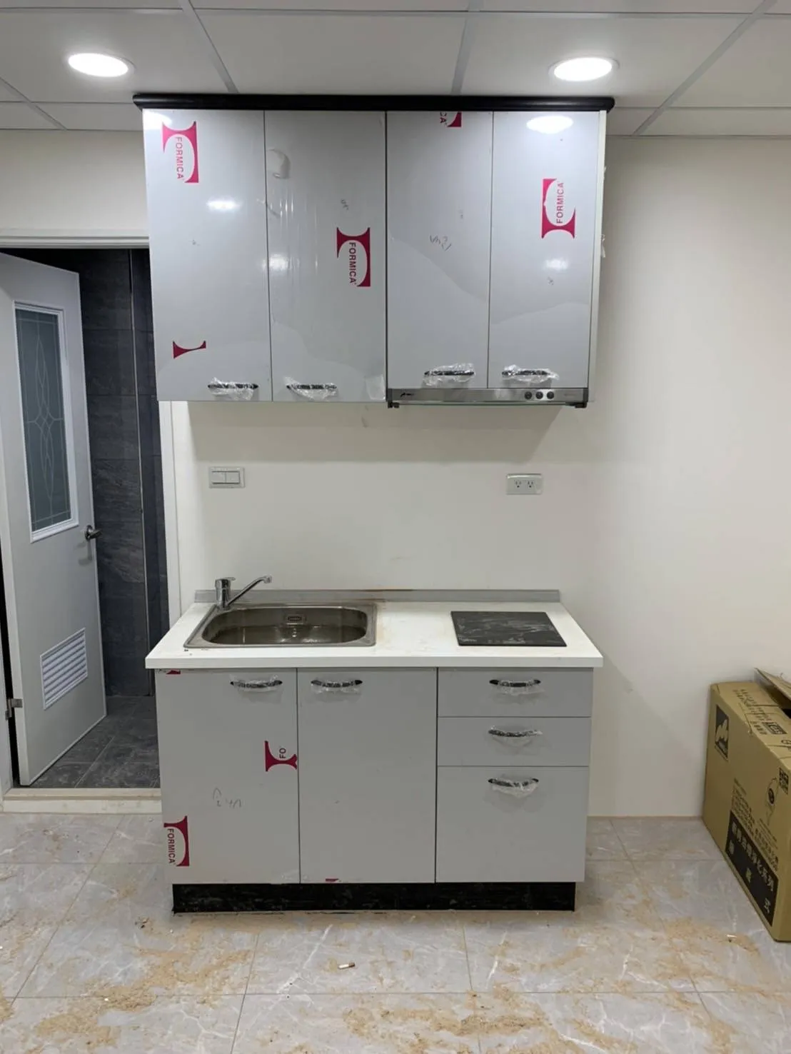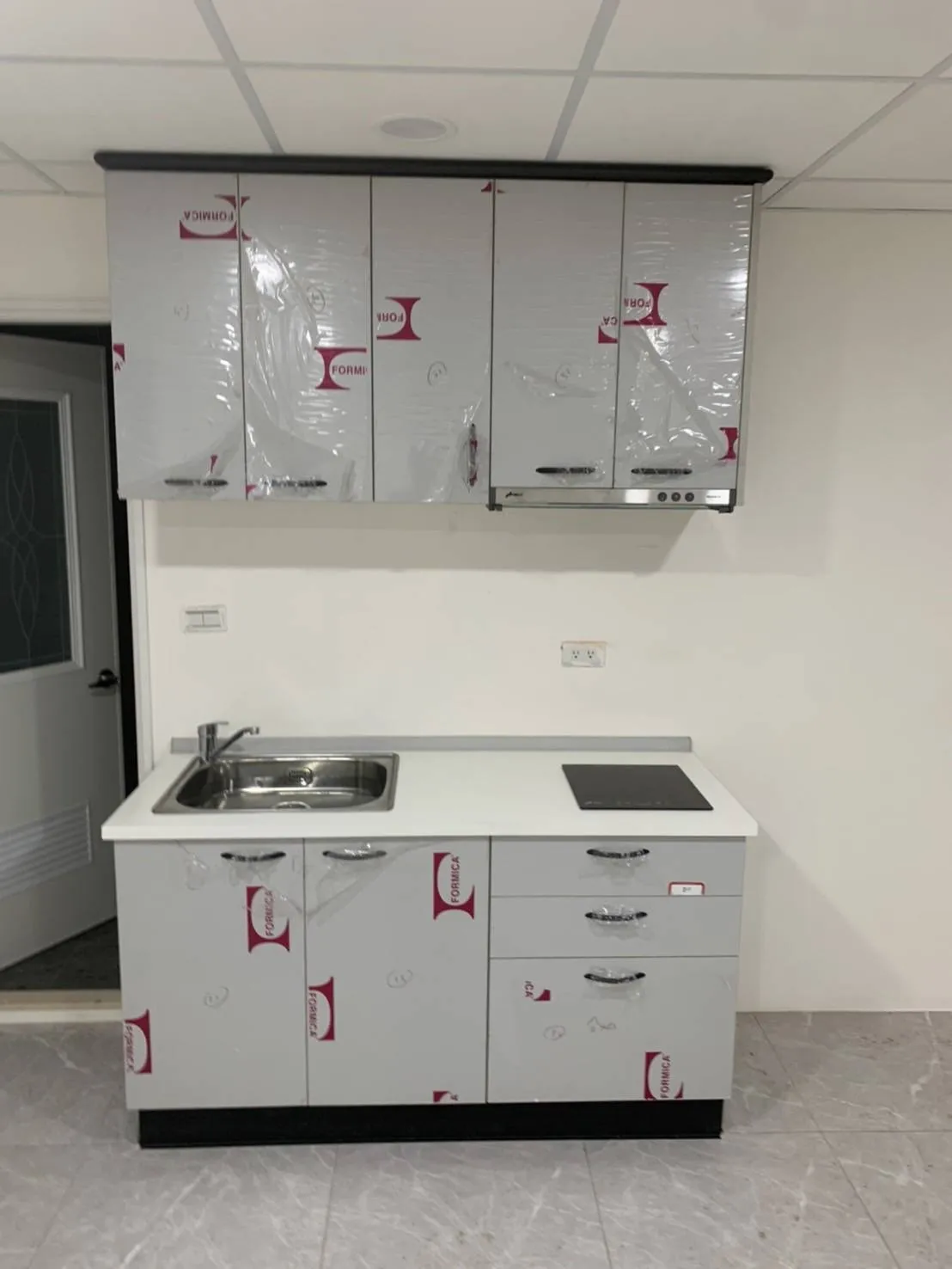 材質介紹: 桶身: 木芯板桶身 門板: 美耐板門板 F0927 台面: 美耐板台面 F1050 配件介紹: 豪山單口電磁爐 IH-1132 豪山排油煙機 VEQ-6158