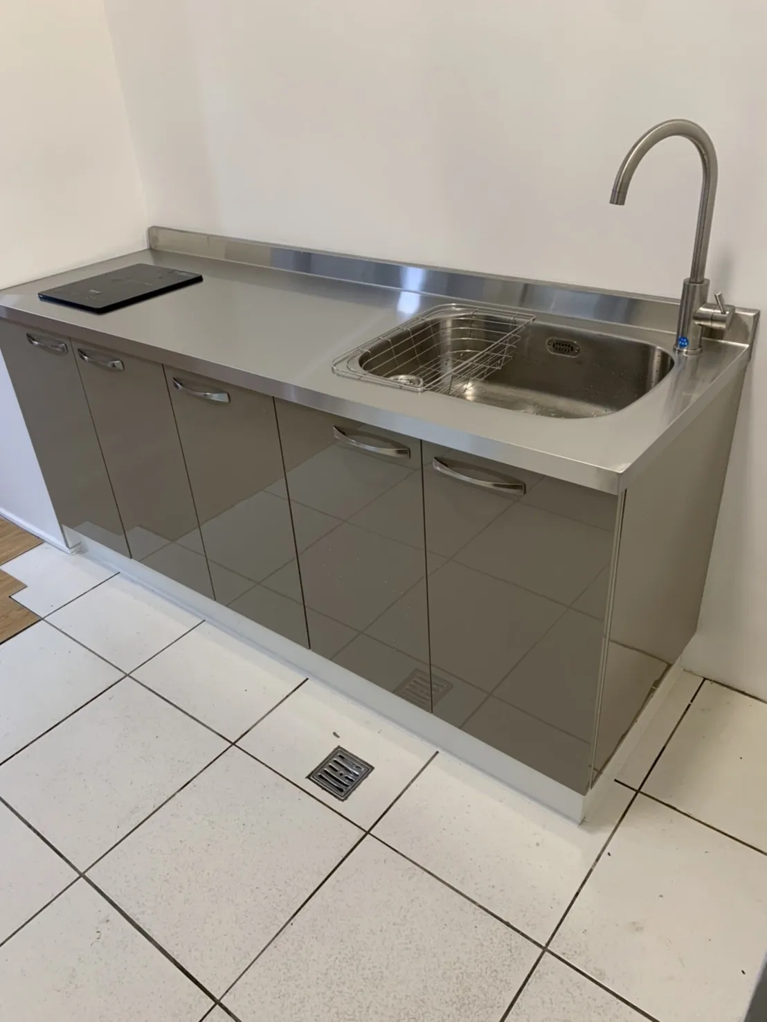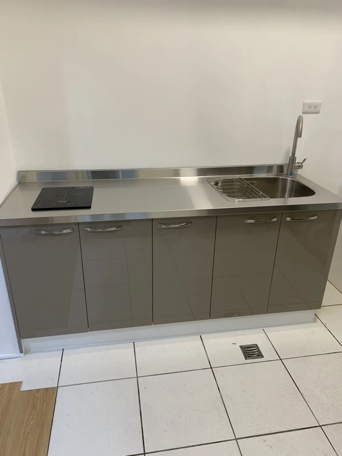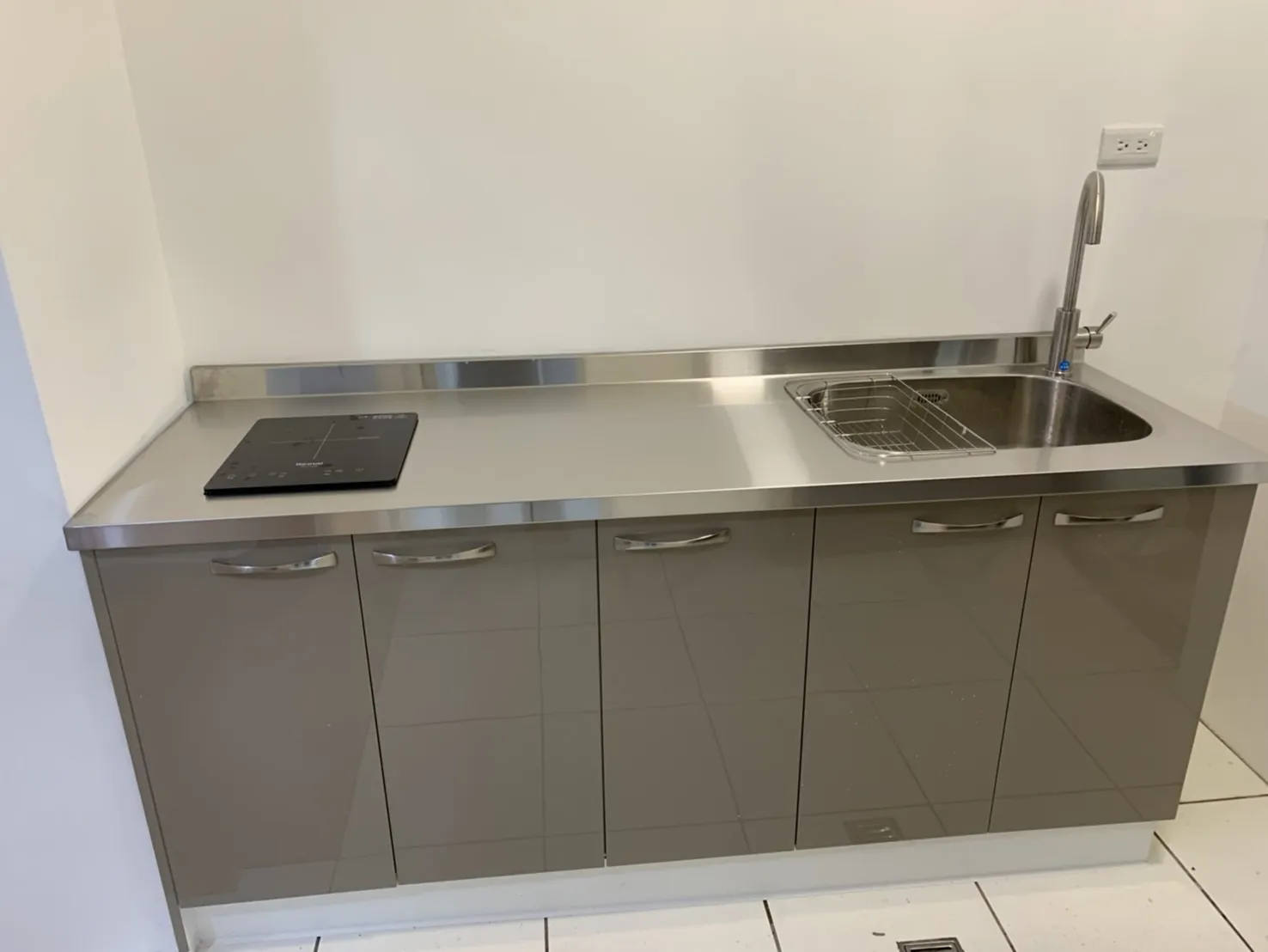 材質介紹: 桶身: 木芯板桶身 門板: 結晶門板A118 台面: 不鏽鋼台面 配件: 林內單口電爐 H-1181