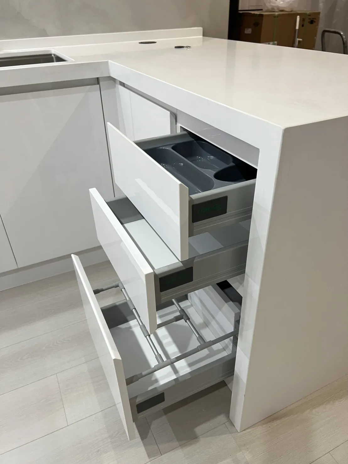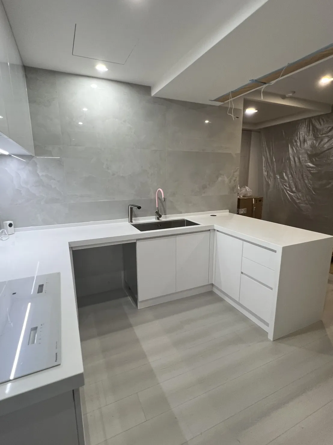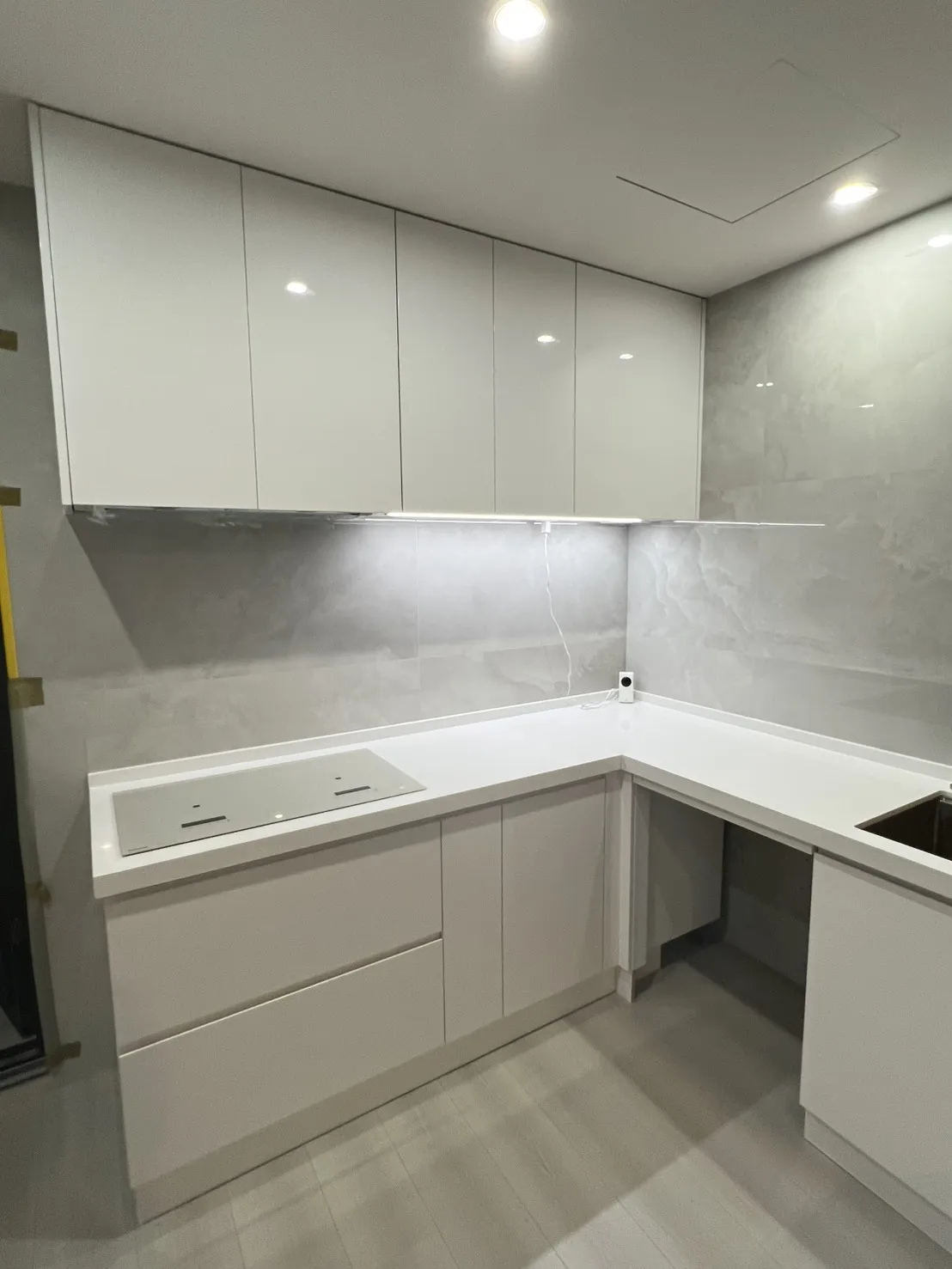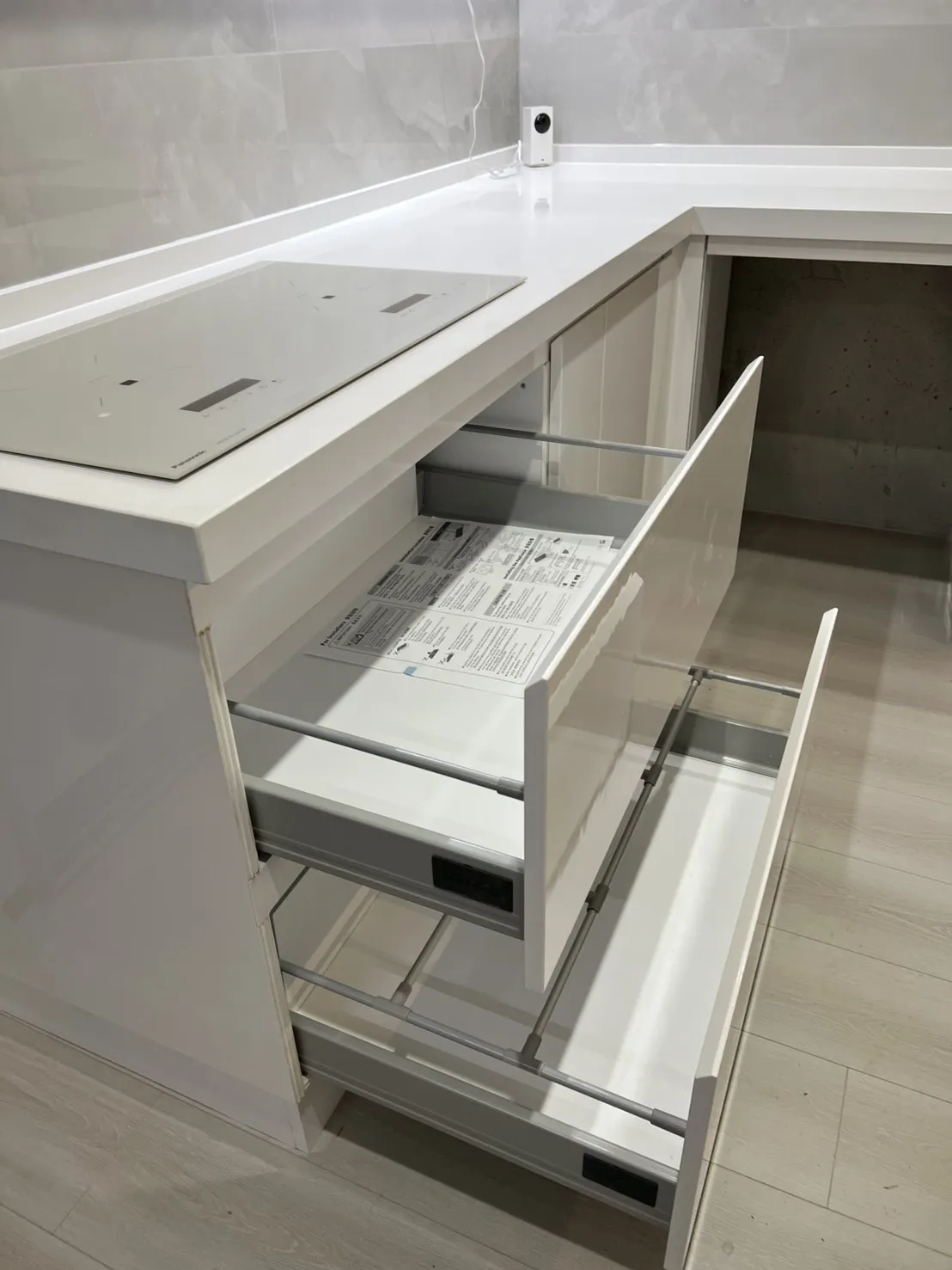 材質介紹: 桶身: 木芯板桶身 門板: 結晶門板K01 台面: 石英石G-5501 配件介紹: 國際牌IH雙口電爐 KY-A1W70-W 櫻花油煙機 DR-3590