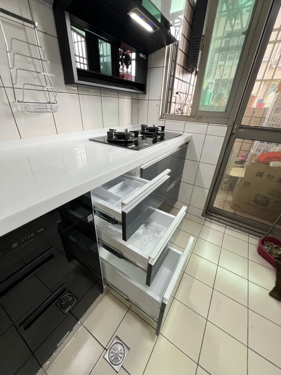 材質介紹: 桶身: 木芯板桶身 水槽不鏽鋼桶身 門板: 結晶門板, 吊廚A101. 下廚A116 台面: 韓國人造石AG-612 配件介紹: 櫻花爐台 G2522G 櫻花油煙機 R-7302 櫻花落地烘碗機Q-7560ML