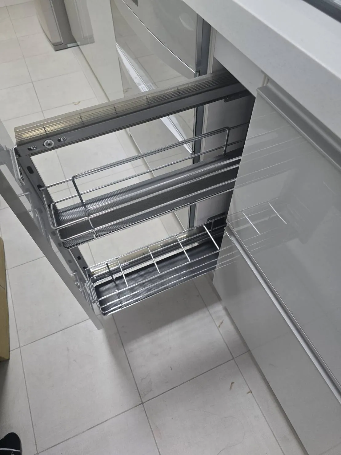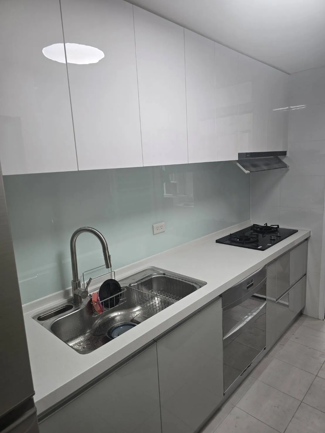 材質介紹: 桶身: 木芯板桶身 門板: 結晶門板, 吊廚K01. 下廚K02 台面: 石英石S-1001 配件介紹: 櫻花爐台 G2922G 櫻花油煙機 DR-3592 櫻花落地烘碗機Q-7592