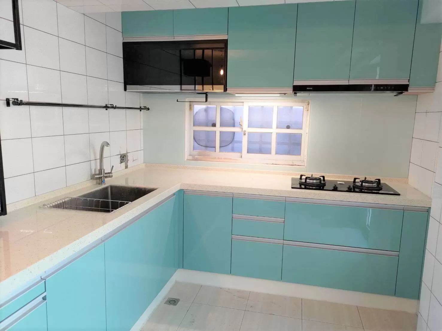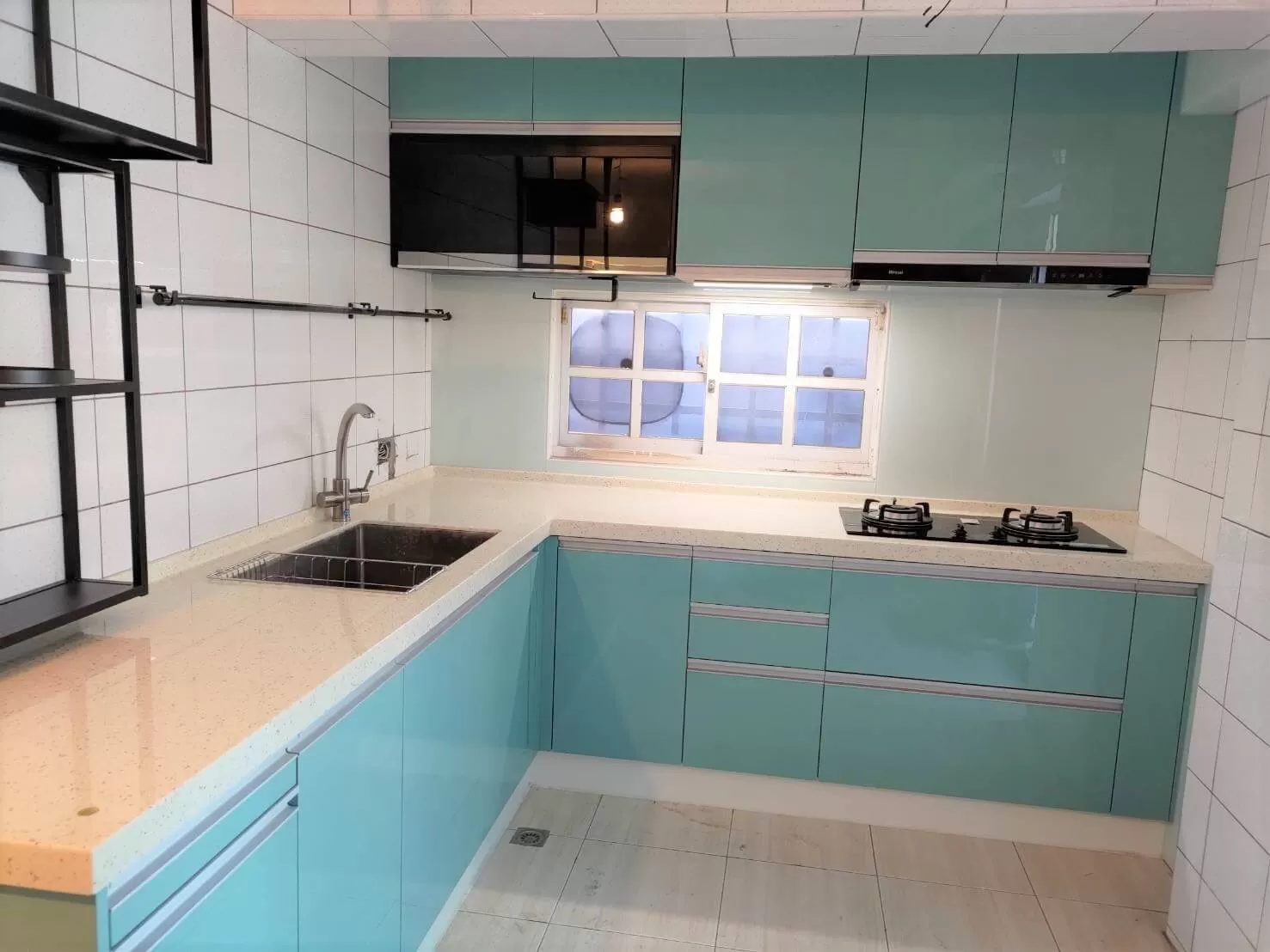 廚具材質介紹: 桶身: 木芯板 門板: 結晶門板 K10 崁把手 台面: 韓國人造石AF611 配件介紹: 林內玻璃爐台 RH-202GH 林內油煙機 RH-8127 林內烘碗機 RKD-196SB 多功能防蟑防臭大單水槽 圓弧水龍頭